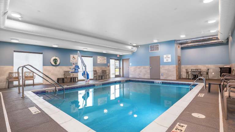 Holiday Inn Express & Suites Cedar Rapids NE - Marion by IHG ist ein modernes Hotel mit klimatisierten Zimmern und einer Vielzahl von Annehmlichkeiten, darunter ein Innenpool, Gemeinschaftslounge und Businesscenter. Die Unterkunft bietet einen 24-Stunden-Rezeption und ist haustierfreundlich.