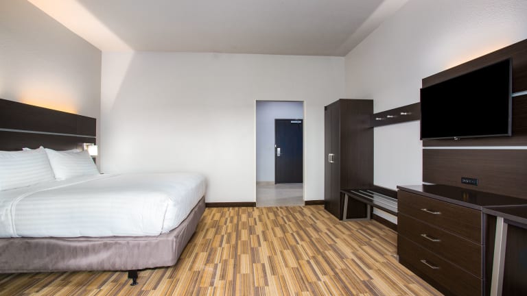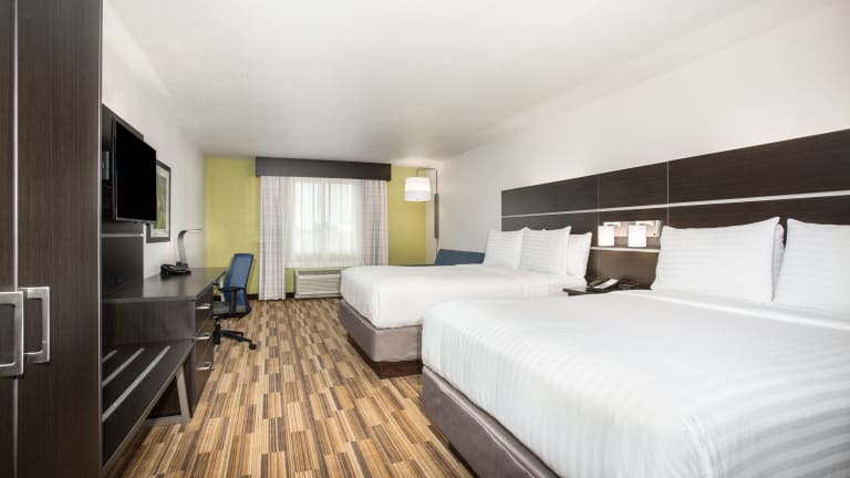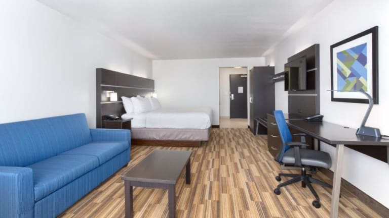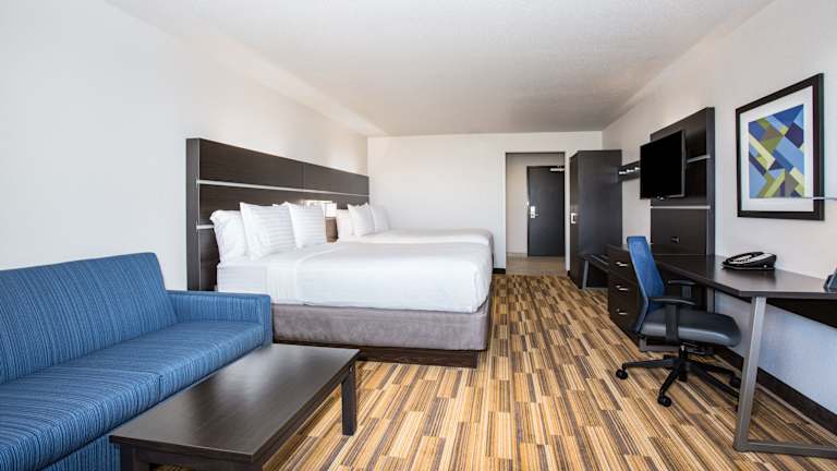 Das Holiday Inn Express & Suites - Rapid City - Rushmore South verfügt über 99 Zimmer auf 4 Etagen, die über einen Aufzug erreichbar sind. Die Zimmer sind komfortabel eingerichtet und verfügen über Annehmlichkeiten wie Klimaanlage, Kühlschrank, Mikrowelle, Kaffeemaschine, Fernseher und kostenfreies WLAN. Rollstuhlgerechte Zimmer mit barrierefreiem Badezimmer sind ebenfalls verfügbar.