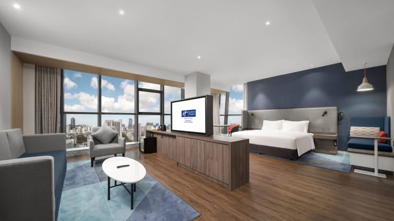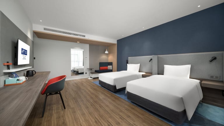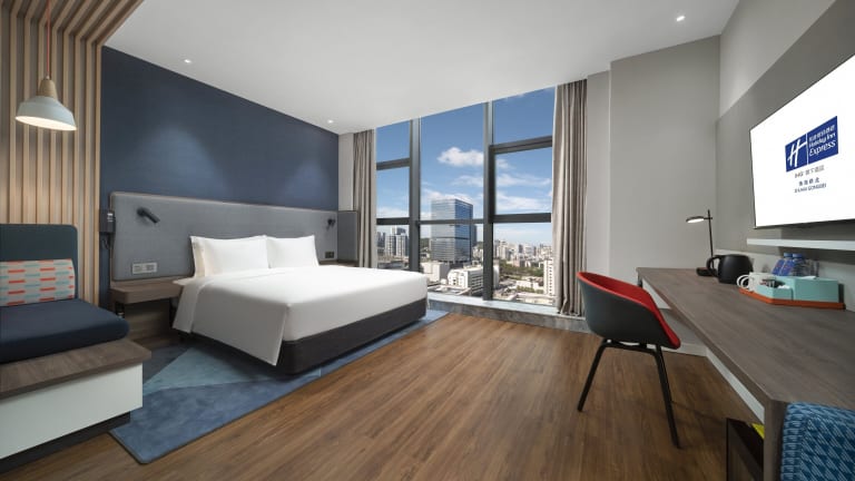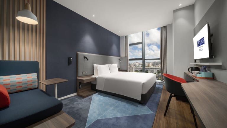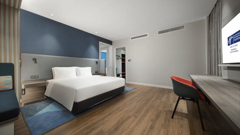 Das Holiday Inn Express Zhuhai Gongbei bietet komfortable Zimmer mit moderner Ausstattung. Jedes Zimmer verfügt über Annehmlichkeiten wie Klimaanlage, kostenfreies WLAN, einen Flachbildfernseher und ein eigenes Badezimmer. Für zusätzlichen Komfort steht den Gästen auch ein Schreibtisch zur Verfügung.