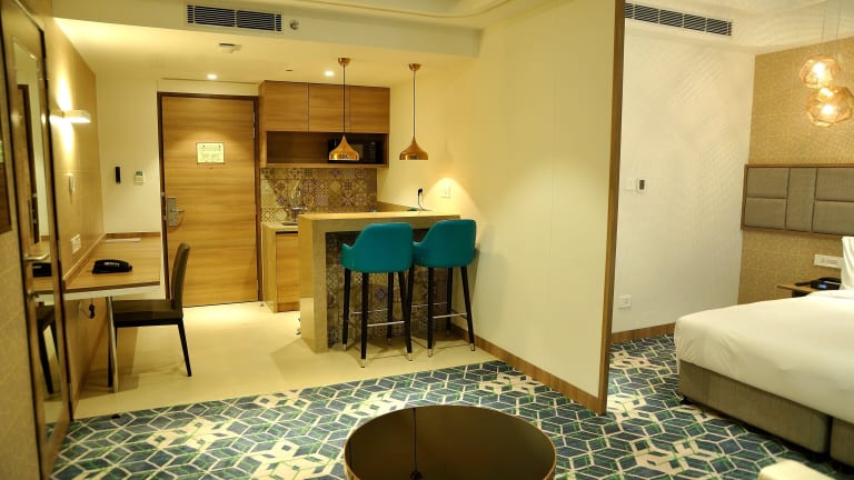 Die Zimmer sind mit Klimaanlage, Flachbild-TV mit Kabelkanälen, Kühlschrank, Wasserkocher, Dusche sowie kostenlosen Pflegeprodukten ausgestattet. Jedes Zimmer beinhaltet ein eigenes Badezimmer mit Haartrockner. Einige Wohneinheiten verfügen zudem über einen Balkon. Die Zimmer sind vollständig mit einem Sitzbereich und einem Schreibtisch eingerichtet.