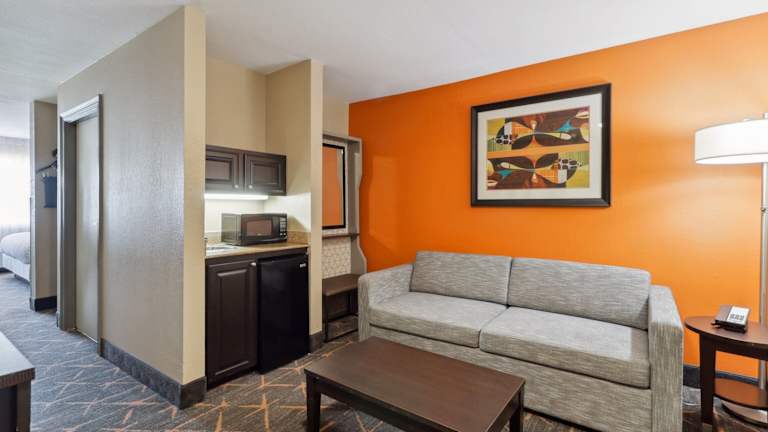 Die 91 Nichtraucherzimmer im Slidell Holiday Inn Hotel & Suites sind komfortabel und modern eingerichtet. Jedes Zimmer verfügt über Annehmlichkeiten wie eine Mikrowelle, einen Kühlschrank und eine Kaffeemaschine, um Ihren Aufenthalt so angenehm wie möglich zu gestalten. Entspannen Sie sich beim Fernsehen mit Kabelkanälen oder erledigen Sie geschäftliche Angelegenheiten am Holzschreibtisch.