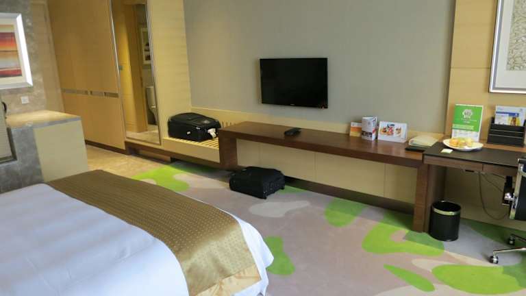 Die Zimmer im Holiday Inn Qingdao Expo sind im Schlossstil gestaltet und bieten eine luxuriöse und moderne Einrichtung. Jedes Zimmer verfügt über Annehmlichkeiten wie einen Flachbild-Sat-TV, einen komfortablen Arbeitsbereich, eine Minibar, einen Kühlschrank, einen Safe, ein Bügeleisen/-brett und einen separaten Sitzbereich mit einem Sofa. Die Badezimmer sind mit einer Dusche, einem Haartrockner und flauschigen Bademänteln ausgestattet. Einige Zimmer bieten auch Zugang zur Executive Lounge oder eine iPod-Dockingstation.