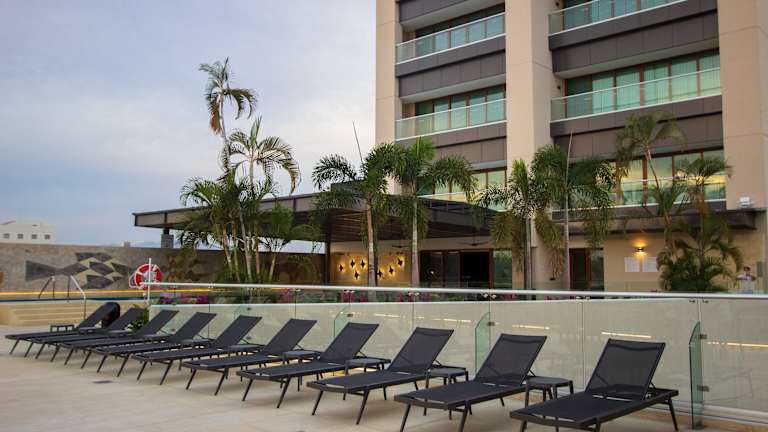 Das Holiday Inn & Suites - Puerto Vallarta Marina & Golf by IHG verfügt über 151 Zimmer auf 9 Etagen und bietet verschiedene Annehmlichkeiten wie einen Außenpool, eine Terrasse, einen Spa- und Wellnessbereich, sowie Dienstleistungen wie Zimmerservice, einen Währungsumtausch und ein Business-Center. Das Hotelpersonal ist rund um die Uhr an der Rezeption erreichbar und unterstützt die Gäste bei Fragen und Wünschen. Es gibt zudem Einrichtungen für Personen mit eingeschränkter Mobilität.
