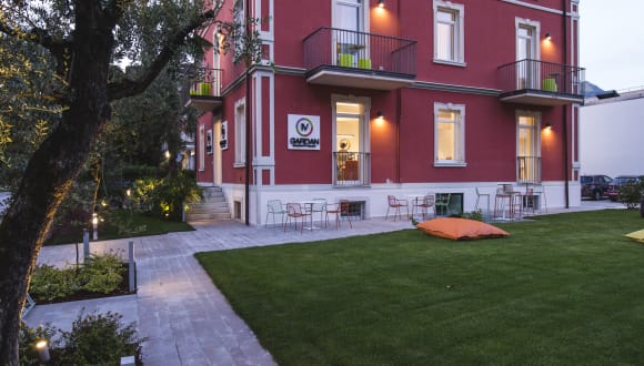 Das Hotel IV Gardan liegt am wunderschönen Gardasee, im Zentrum der pulsierenden Stadt Riva del Garda, umgeben von traumhaften Stränden, atemberaubenden Panoramen und einer grossen Auswahl von Restaurants, die Ihnen von feiner Gourmetküche zu traditioneller Trentiner Küche Alles anbieten. Unser Haus öffnet im Sommer 2017 mit der Mission, seinen Gästen die erste Serendipity Holiday im Trentino zu bieten, eine einzigartige und entspannende Erfahrung in quasi surrealer Umgebung. 17 bis ins kleinste Detail durchdachte Zimmer erwarten Sie, und werden Sie mit ihrer fantasievollen Gestaltung überraschen.