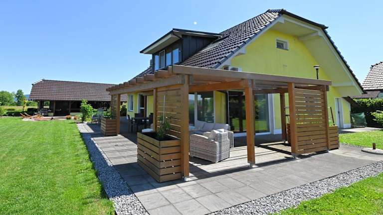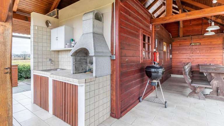 Die Villa verfügt über zwei Schlafzimmer und ein Wohnzimmer, in dem ein Flachbild-Sat-TV sowie ein DVD-Player zur Verfügung stehen. Die Küche ist mit modernen Geräten ausgestattet, darunter ein Geschirrspüler, ein Backofen, eine Kaffeemaschine und ein Wasserkocher. Schallisolierte Zimmer und allergikerfreundliche Einrichtungen sind Teil der Ausstattung.