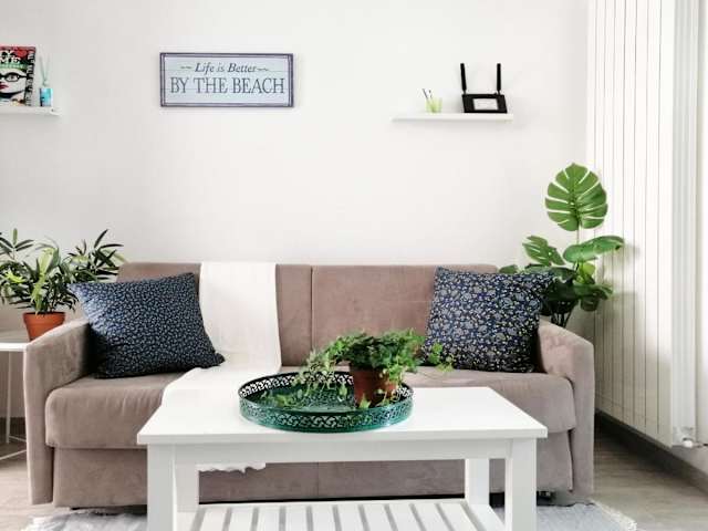 Die Ferienwohnung verfügt über 2 Schlafzimmer, eine Küche, die mit einem Kühlschrank und einem Ofen ausgestattet ist, einen Flachbild-TV, einen Sitzbereich und ein Badezimmer mit Bidet. Handtücher und Bettwäsche werden bereitgestellt.