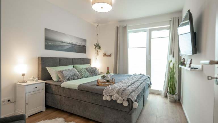 Die Ferienwohnung verfügt über 2 Schlafzimmer, einen TV sowie eine voll ausgestattete Küche. Die Küche ist mit einem Kühlschrank, einem Geschirrspüler, einer Waschmaschine, einem Ofen und einer Mikrowelle ausgestattet.