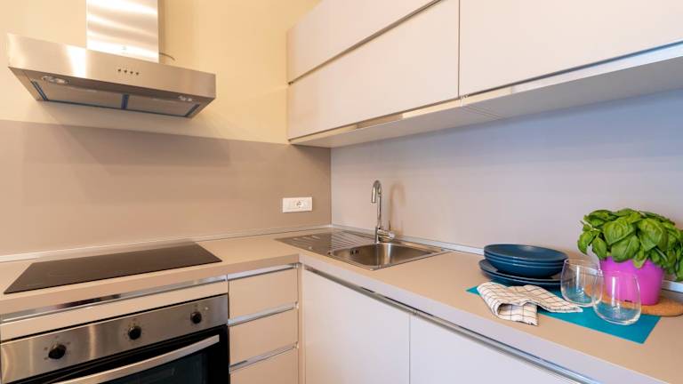 In der Unterkunft gibt es eine voll ausgestattete Küche mit Kühlschrank und Kaffeemaschine. Es besteht auch die Möglichkeit zur Essenslieferung in die Unterkunft. Die Ferienwohnung stellt Handtücher und Bettwäsche bereit.