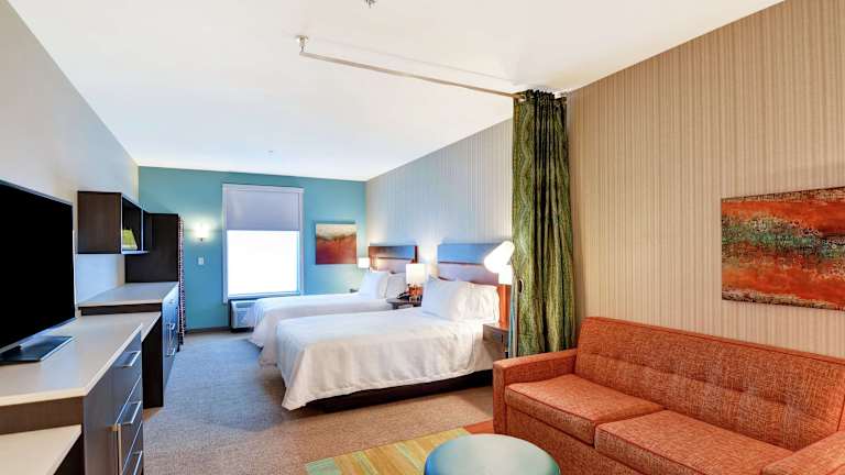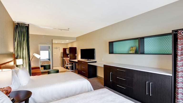 Die klimatisierten Suiten im Home2 Suites By Hilton Las Vegas Strip South sind geräumig und verfügen über Annehmlichkeiten wie einen HD-TV, einen großen Kühlschrank, eine Mikrowelle und eine voll ausgestattete Kochnische. Die eigenen Badezimmer sind mit einer Badewanne oder einer Dusche und einem Haartrockner ausgestattet. Einige Zimmer sind rollstuhlgerecht und verfügen über barrierefreie Badezimmer.