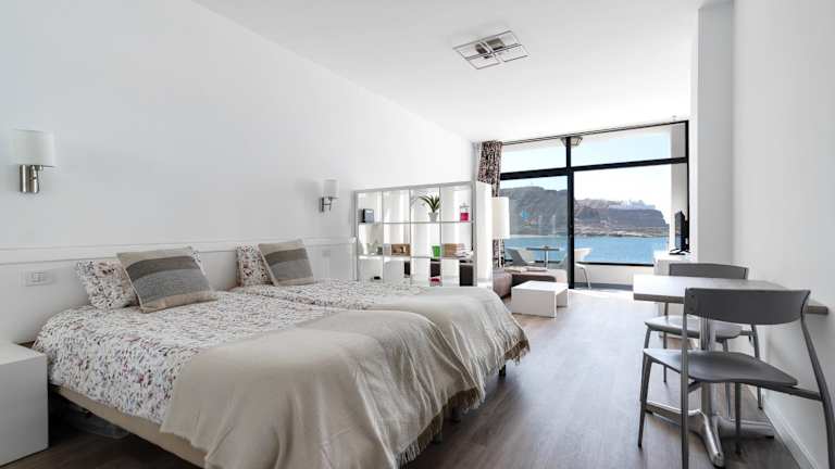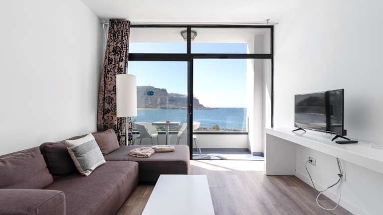 Home2Book Gorgeous Oceanfront Studio Mogán, Views bietet eine klimatisierte Ferienwohnung mit Meer- und Bergblick sowie kostenfreiem WLAN. Die Unterkunft verfügt über eine Terrasse, Gartenmöbel und einen Außenpool, der zum Entspannen einlädt. Die Unterkunft ist eine Nichtraucherunterkunft und es sind keine Junggesellen-/Junggesellinnenabschiede erlaubt. Ein kontaktloser Check-in und Check-out wird angeboten.