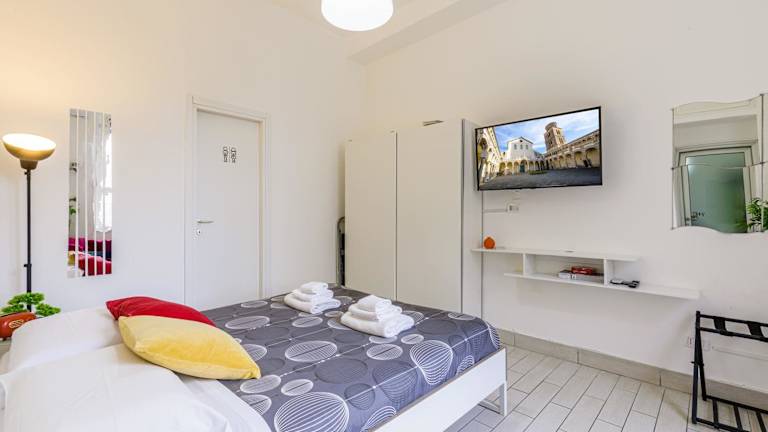 Home4Apartment 2, Salerno cathedral area ist eine Ferienwohnung, die moderne Übernachtungsmöglichkeiten bietet. Die Annehmlichkeiten umfassen kostenloses WLAN und einen Flachbild-TV. Die Rezeption ist rund um die Uhr besetzt und das Personal spricht Englisch und Italienisch. Es sind keine Junggesellen-/Junggesellinnenabschiede oder ähnliche Feiern erlaubt. Der Check-in ist ab 15:00 Uhr bis 23:30 Uhr möglich, während der Check-out bis 11:00 Uhr erfolgt. Es wird empfohlen, die voraussichtliche Ankunftszeit im Voraus mitzuteilen.