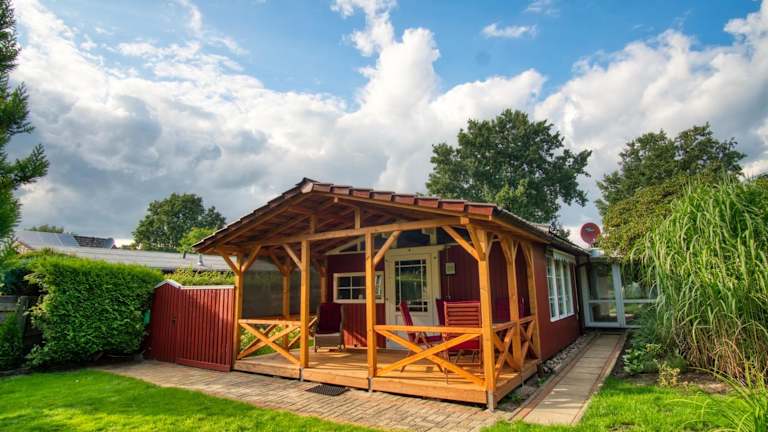 Das Ferienhaus beinhaltet 2 Schlafzimmer und 1 Badezimmer. Zur Ausstattung gehören Bettwäsche, Handtücher, ein Flachbild-TV, ein Essbereich sowie eine Terrasse mit Blick auf den Garten.