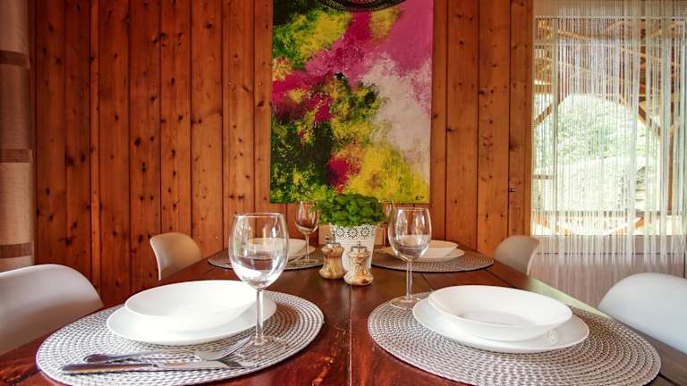 Es besteht die Möglichkeit, Lebensmittel liefern zu lassen, jedoch fallen hierfür zusätzliche Gebühren an. Die voll ausgestattete Küche im Ferienhaus ermöglicht die Selbstversorgung.