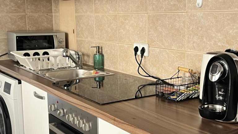 Die Ferienwohnung umfasst ein Schlafzimmer und ein Badezimmer, ausgestattet mit Bettwäsche und Handtüchern. Zur Ausstattung gehören ein Flachbild-TV, ein Essbereich, eine voll ausgestattete Küche und ein Balkon mit Blick auf den Garten. Die Unterkunft ist familienfreundlich und bietet einen Kinderspielplatz.
