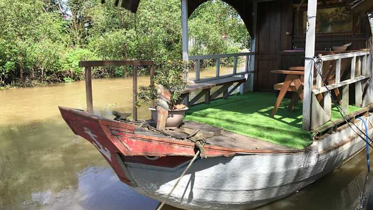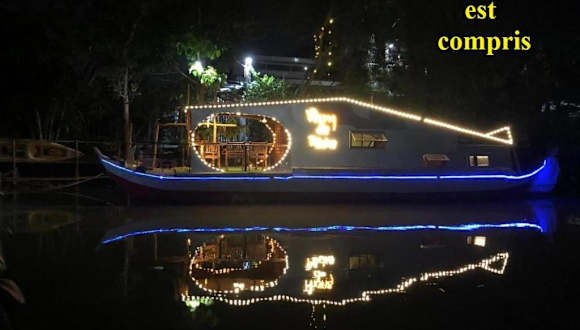 Das Homestay Phong de Pêche in Ấp Tân Bình (1) bietet eine komfortable Unterkunft mit Klimaanlage und kostenfreien Parkplätzen. Das Boot ist ideal gelegen, um Aktivitäten wie Radfahren und Angeln zu genießen. Die Gäste können eine voll ausgestattete Küche nutzen und es gibt auch einen Essbereich. Das Homestay verfügt über eine Sonnenterrasse und bietet auch einen Fahrrad- und Autoverleihsservice. Der nächste Flughafen ist der internationale Flughafen Can Tho, der sich 62 km von der Unterkunft entfernt befindet. Ein kostenpflichtiger Flughafentransfer wird angeboten.