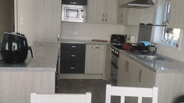 Das Chalet verfügt über zwei Schlafzimmer, eine gut ausgestattete Küche mit Kühlschrank und Geschirrspüler, einen Flachbild-TV, einen Sitzbereich sowie zwei Badezimmer, die mit einer Dusche ausgestattet sind.