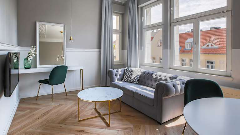 Die Homewell Boutique Apartments bieten komfortable und stilvolle Unterkünfte in Posen. Mit einer idealen Lage in der Nähe von Sehenswürdigkeiten wie dem Palmenhaus und der internationalen Messe Posen ist das Hotel perfekt für Geschäftsreisende und Urlauber geeignet. Die Apartments sind mit einer voll ausgestatteten Küchenzeile, kostenfreiem WLAN und modernen Annehmlichkeiten ausgestattet.