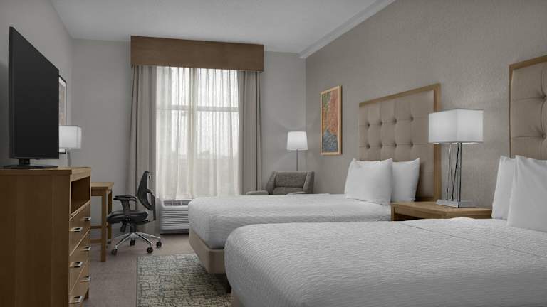 Die Zimmer verfügen über Klimaanlage, einen Schreibtisch, ein Sofabett sowie eine Küche mit Kühlschrank, Herd, Mikrowelle und Geschirrspüler. Weitere Ausstattungsmerkmale der Zimmer sind ein Flachbildfernseher, WiFi ohne Gebühr und ein Badezimmer mit Dusche und Haartrockner. Einige Zimmer sind barrierefrei gestaltet.