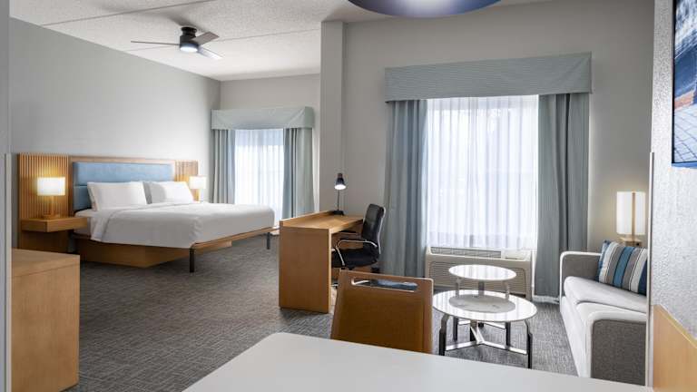 Das Hotel bietet komfortable Suiten mit voll ausgestatteten Küchen, die es den Gästen ermöglichen, ihre eigenen Mahlzeiten zuzubereiten. Jede Suite verfügt über einen Schreibtisch und einen Esstisch sowie moderne Annehmlichkeiten wie Flachbild-TVs und Radiowecker mit MP3-Player-Anschluss.