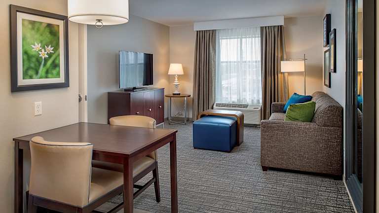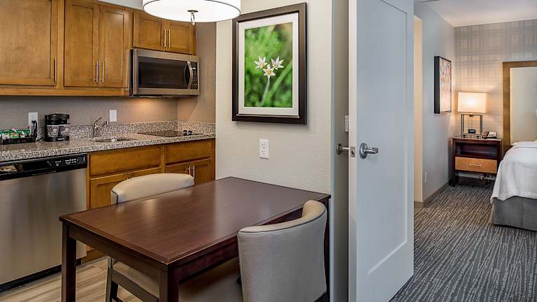 Die Zimmer in der Homewood Suites by Hilton St. Louis Westport sind mit einer Küche ausgestattet, die Kühlschrank, Mikrowelle und Essbereich umfasst. Sie bieten ein Kingsizebett und ein Schlafsofa. Zustellbetten sind auf Anfrage erhältlich. Weitere Annehmlichkeiten umfassen eine Klimaanlage, einen Schreibtisch, ein TV-Gerät und kostenlosen WLAN-Zugang. Die Badezimmer verfügen über eine Dusche und einen Haartrockner, zusätzlich stehen Kosmetikartikel zur Verfügung. Es stehen Familien- und Nichtraucherzimmer zur Verfügung, sowie rollstuhlgerechte Optionen.