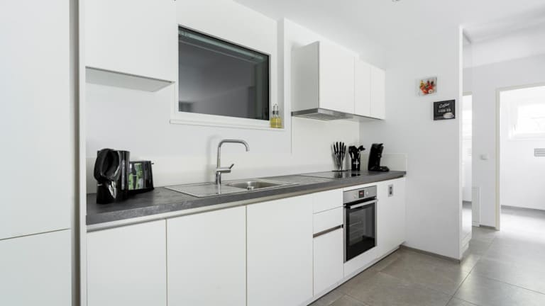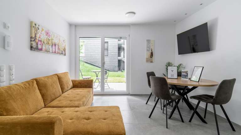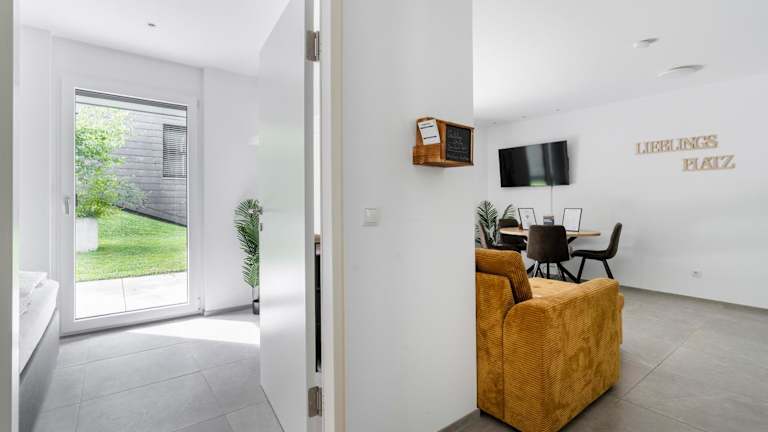 Die Ferienwohnung umfasst ein Wohnzimmer, einen Flachbild-TV, eine gut ausgestattete Küche mit Kühlschrank und Geschirrspüler sowie ein Badezimmer mit Dusche. Handtücher und Bettwäsche werden bereitgestellt.