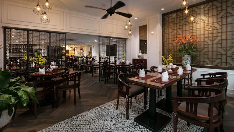 Im Hong Ngoc Dynastie Boutique Hotel & Spa können Sie im Rice Bistro eine Auswahl an vietnamesischen Gerichten und erfrischenden Cocktails genießen. Das Restaurant bietet ein kontinentales Buffetfrühstück und ein Mittagsmenü. Es werden auch spezielle Diätgerichte angeboten. Die Bar ist der perfekte Ort, um den Tag bei einem Drink ausklingen zu lassen.
