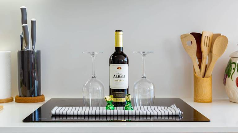 Die Ferienwohnung besteht aus zwei Schlafzimmern, einem Wohnzimmer und einer voll ausgestatteten Küche, die mit einem Kühlschrank und einer Kaffeemaschine ausgestattet ist. Zudem gibt es ein Badezimmer mit einer Dusche und einem Haartrockner. Handtücher und Bettwäsche werden bereitgestellt. Die Unterkunft ist klimatisiert und bietet einen Balkon mit Poolblick.