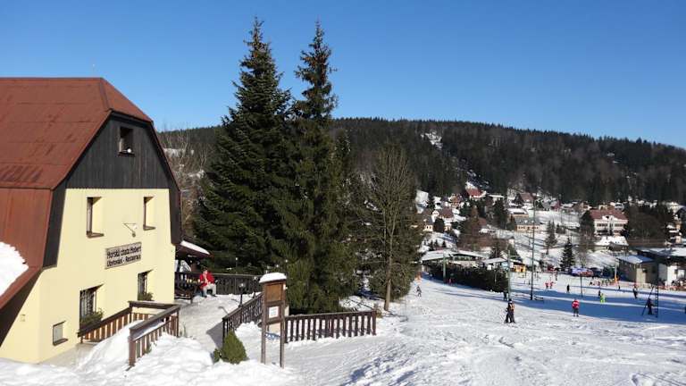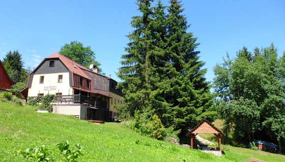 Das Horská chata Hubert im schönen Isergebirge bietet Ihnen eine ideale Unterkunft zur Selbstverpflegung, umgeben von atemberaubender Natur und direkt neben dem Skigebiet Bedřichov. Genießen Sie den Komfort der gut ausgestatteten Zimmer und Apartments, das Restaurant mit Terrasse und den Garten mit Grillmöglichkeiten. Kinder können sich auf dem Spielplatz austoben und kostenfreies WLAN steht Ihnen in allen Bereichen zur Verfügung. Entdecken Sie die vielfältigen Freizeitmöglichkeiten wie Skifahren, Radfahren und Wandern in der Umgebung.