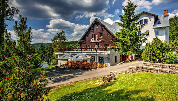 Das Horska chata Svetlanka in Rokytnice nad Jizerou ist eine gemütliche Pension, die Ihnen einen angenehmen Aufenthalt in einer malerischen Umgebung bietet. Mit direktem Zugang zu den Skipisten und einer Vielzahl von Freizeitaktivitäten wie Wandern, Tischtennis und Darts ist für jeden etwas dabei. Genießen Sie die entspannte Atmosphäre und den Komfort der Nichtraucherunterkunft, sowie den Garten, das Restaurant und die Bar. Das kostenfreie WLAN ermöglicht Ihnen eine einfache Kommunikation und Internetzugang während Ihres Aufenthalts.