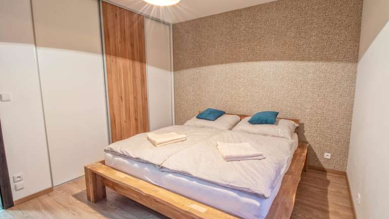 Die Ferienwohnung umfasst zwei Schlafzimmer sowie ein Wohnzimmer, das mit einem Flachbild-TV mit Satellitenkanälen ausgestattet ist. Eine voll ausgestattete Küche mit Kühlschrank und Geschirrspüler ist ebenfalls vorhanden. Zudem gibt es ein Badezimmer mit Dusche. Handtücher und Bettwäsche werden gestellt.