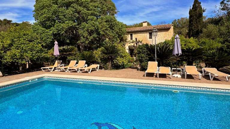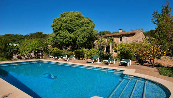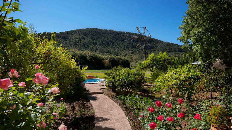 Hort Den Gelos Campanet Mallorca ist eine Villa mit einem Außenpool und Poolblick. Die Unterkunft bietet eine entspannte Atmosphäre und eine komfortable Ausstattung mit Blick auf die umliegenden Berge, ideal für einen erholsamen Aufenthalt.