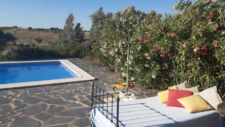 Das Horta do Muro liegt in Alentejo, nur 3 km vom malerischen Dorf Campo Maior entfernt. Die Umgebung ist geprägt von ruhiger Natur und weiß getünchten Gebäuden. Das Dorf selbst ist bekannt für das Festa das Flores, bei dem die Straßen alle 4 Jahre mit Papierblumen geschmückt werden. In der Nähe finden Sie eine Vielzahl von Restaurants, in denen Sie regionale Köstlichkeiten probieren können. Die spanische Stadt Badajoz ist nur 12 km entfernt und die historische Stadt Elvas mit ihren beeindruckenden Befestigungsanlagen erreichen Sie nach 18 km.