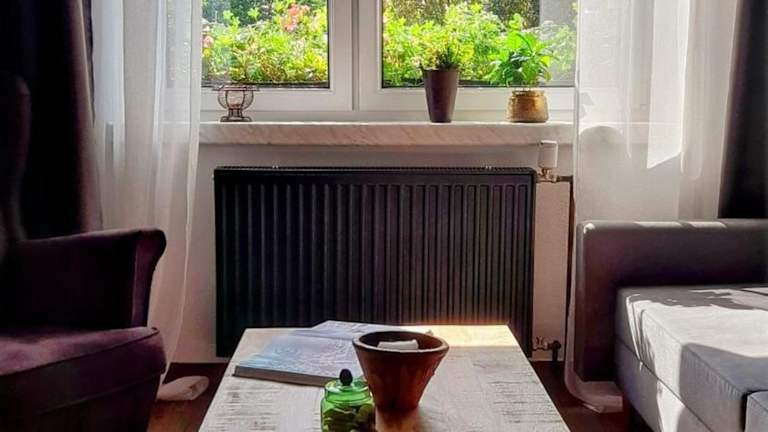 Die Ferienwohnung umfasst ein Schlafzimmer, ein Wohnzimmer, eine voll ausgestattete Küche mit Kühlschrank und Kaffeemaschine sowie ein Badezimmer mit Dusche und Haartrockner. Handtücher und Bettwäsche werden bereitgestellt.