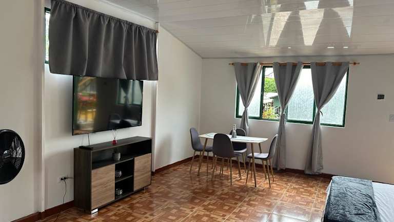 Das Hospedaje Rancho Guadalupe in La Suiza ist der perfekte Ort für einen erholsamen Aufenthalt. Mit seinem Poolblick, dem schönen Garten und der Terrasse bietet der Ferienhof eine ideale Umgebung, um sich zu entspannen und die Natur zu genießen. Das kostenfreie WLAN und die kostenfreien Privatparkplätze sorgen für zusätzlichen Komfort. Die Unterkünfte sind modern eingerichtet und verfügen über Annehmlichkeiten wie eine Terrasse, einen Flachbild-TV und ein eigenes Badezimmer. Starten Sie Ihren Tag mit einem leckeren amerikanischen Frühstück im Hospedaje Rancho Guadalupe. Die Lage des Ferienhofs ist auch ideal für Ausflüge in die Umgebung, wie zum Nationalpark Kaffee und nach Panaca. Der internationale Flughafen El Edén ist nur 20 km entfernt.