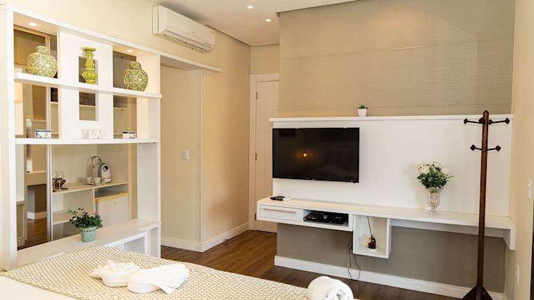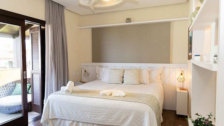 Das Hospedaria Refúgio das Galés liegt direkt am Strand Mariscal, etwa 15 km von Balneário Camboriú und 65 km von der Innenstadt Florianópolis entfernt. Der Busbahnhof in Navegantes ist 30 km entfernt, während der internationale Flughafen 50 km anreisend ist.
