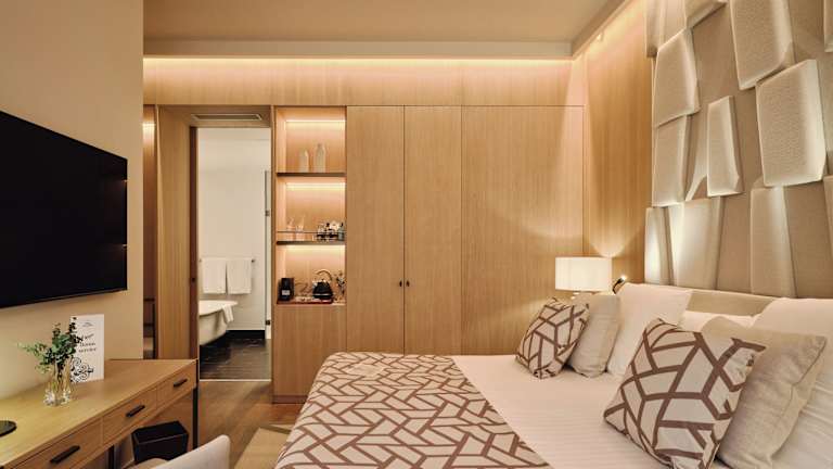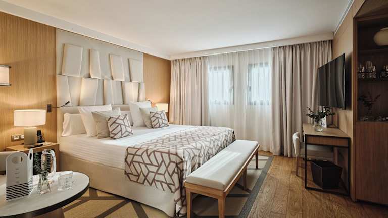 Die Zimmer sind modern und elegant gestaltet und verfügen über Klimaanlage, Heizung, Minibar, Safe sowie Kommunikations- und Unterhaltungsmöglichkeiten durch ein TV-Gerät und WLAN. Die Badezimmer sind mit Dusche und Badewanne ausgestattet. Zudem gibt es Familienzimmer sowie rollstuhlgerechte Zimmer.
