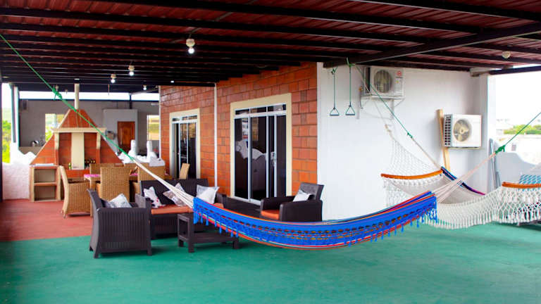 Das Hostal Cattleya in Puerto Baquerizo Moreno ist eine gemütliche Unterkunft mit einem schönen Garten, einer Gemeinschaftslounge und einer Terrasse. Hier können Sie sich entspannen und die Annehmlichkeiten wie kostenfreies WLAN und eine Gemeinschaftsküche nutzen. Das freundliche Personal steht Ihnen rund um die Uhr zur Verfügung und organisiert gerne Ausflüge für Sie. Beginnen Sie Ihren Tag mit einem leckeren kontinentalen Frühstück, das täglich serviert wird. Die Lage des Hostal Cattleya ist ideal, da es in der Nähe beliebter Sehenswürdigkeiten wie dem Strand Playa de los Marinos, dem Strand Oro und dem Museum Mann liegt. Der Flughafen San Cristóbal ist nur 1 km entfernt.