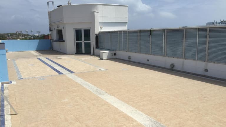 • Die Dachterrasse bietet einen schönen Ausblick auf die Stadt.