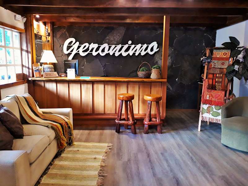 Das Hotel Geronimo bietet eine ideale Unterkunft in der Innenstadt von Pucón. Genießen Sie den Komfort der modernen Zimmer, kostenfreies WLAN und ein köstliches Frühstück jeden Morgen. Entspannen Sie auf der Terrasse oder im Gemeinschaftswohnzimmer und genießen Sie den Blick auf den Vulkan. Die Weinbar mit Kamin und der Zimmerservice sorgen für zusätzlichen Komfort während Ihres Aufenthalts. Das Hotel liegt nur wenige Gehminuten vom Stadtzentrum, dem Strand Playa Grande und dem Busbahnhof entfernt.