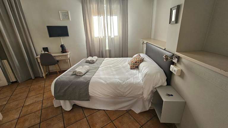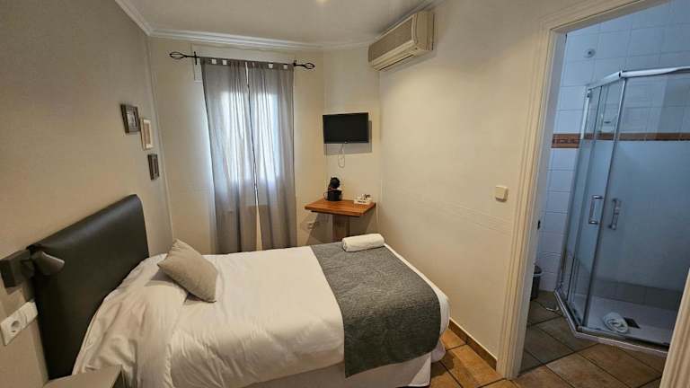 Die Zimmer im Hostal La Campana sind hell und klimatisiert. Sie sind geschmackvoll eingerichtet und verfügen über Holzmöbel. Zur Ausstattung gehören ein TV, Telefon und ein eigenes Badezimmer. Kostenloses WLAN steht den Gästen zur Verfügung. Die Zimmer bieten einen gemütlichen Rückzugsort nach einem Tag voller Erkundungen in Toledo.