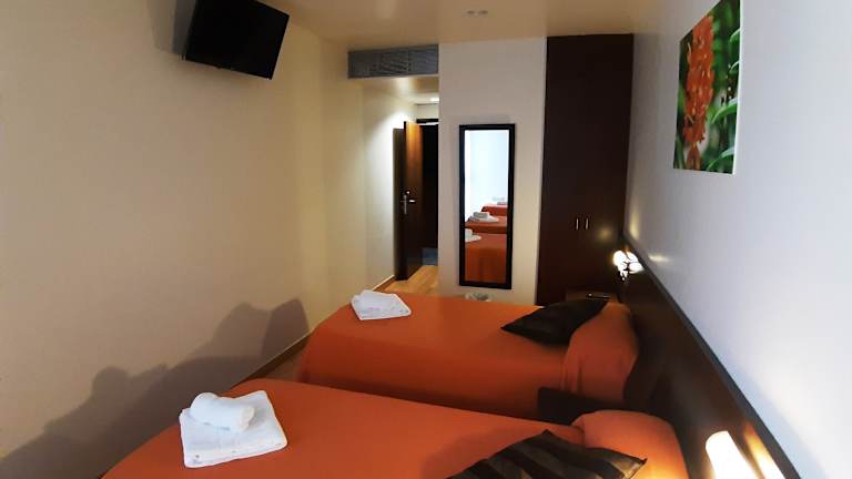 El Hostal Nirvana está situado en el centro de Ponferrada, a escasos 10 minutos a pie del Castillo Templario, a 2 minutos de la estación de autobuses y a 250 metros de la plaza de Lazurtegui y a un paso para retomar el Camino de Santiago. En las inmediaciones, hay numerosos bares, restaurantes y tiendas. El estadio El Toralín se encuentra a 5 minutos a pie y la estación de trenes de Ponferrada, a 10 minutos a pie. Es un edificio de nueva construcción, pensado para garantizarle un cómodo descanso. Contamos con 20 habitaciones, equipadas con colchones ergonómicos, viscoelásticos y transpirables. Las camas están vestidas con lencería “100% algodón”, y están decoradas de forma sencilla. Todas disponen de armario, mesitas de noche, escritorio con flexo para el trabajo o el estudio, aire acondicionado, TV y baño privado. El establecimiento alberga un café-bar y restaurante con comidas local e internacional, cocteles y tapeo. Cuenta también un salón de TV común y un área de ordenadores con conexión a internet y wifi gratuito en todas las estancias del Edificio. Nuestro alojamiento también tiene muy buena puntuación en las centrales y plataformas online de reservas por la mejor relación calidad-precio en Ponferrada, de modo que sacarás más partido a tu dinero en comparación con otros alojamientos de la ciudad.