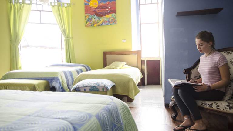 Das Hostal Quito Cultural in Quito heißt seine Gäste herzlich willkommen. Mit seinen 20 Zimmern und freundlichem Personal bietet es den Gästen eine angenehme Unterkunft. WLAN ist im gesamten Hostel verfügbar und ein Tourdesk steht für die Buchung von Ausflügen zur Verfügung. Entspannen können die Gäste im Garten oder in der Bibliothek. Parkmöglichkeiten sind vorhanden und verschiedene Serviceleistungen wie Zimmerservice und Wäscheservice werden angeboten. Das Hostal Quito Cultural verfügt über ein Café und eine Bar, in denen die Gäste ihr Frühstück einnehmen können.
