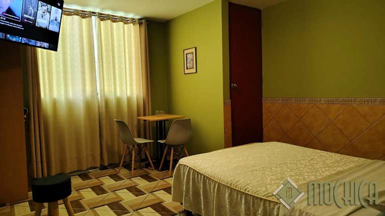 Die Zimmer im Hostal Residencial Mochica bieten einen komfortablen Sitzbereich und ausreichend Stauraum für Ihr Gepäck. Die Unterkunft verfügt auch über einen Kleiderschrank, um Ihre Kleidung ordentlich aufzubewahren. Kostenloses WLAN ist in allen Zimmern verfügbar, so dass Sie mit Ihren Lieben in Kontakt bleiben können.