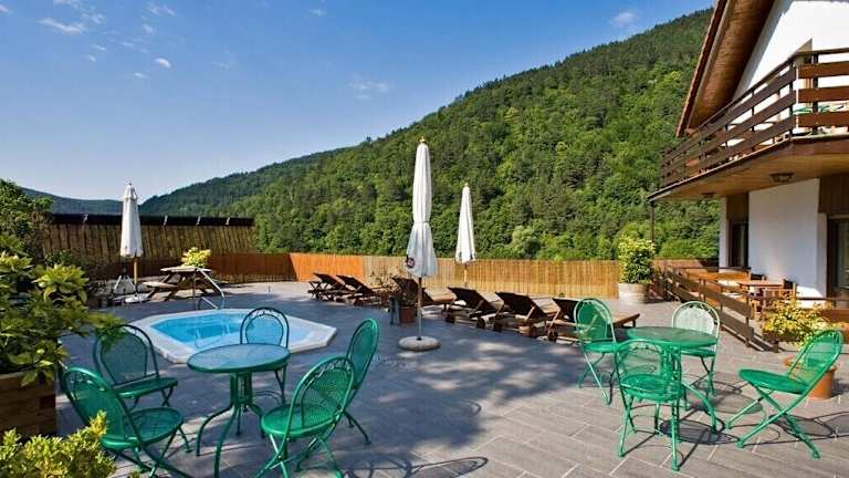 Das Restaurant des Hostals bietet eine abwechslungsreiche Speisekarte mit lokaler, traditioneller Bergküche. Zusätzlich steht eine Bar zur Verfügung, die auf eine Terrasse mit Blick auf den Irati-Wald führt.