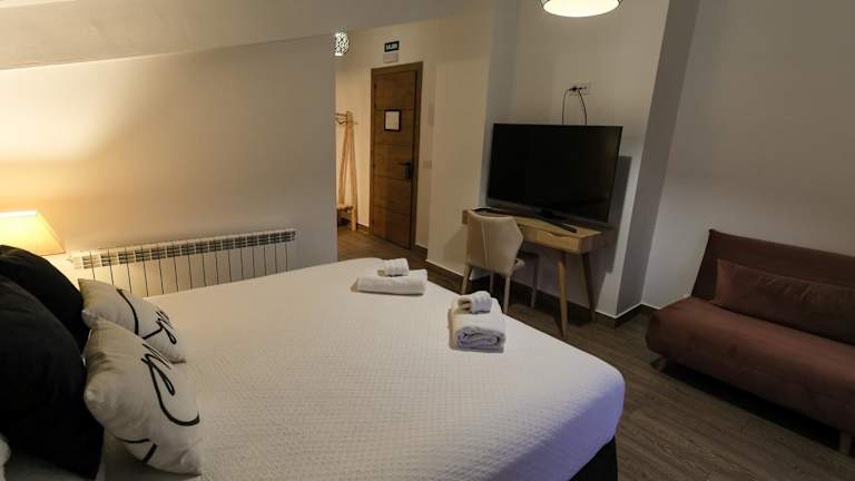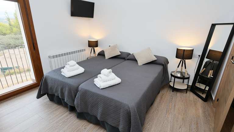 Die Zimmer im Hostal Rural Sartaguda sind mit Klimaanlage und einem Kleiderschrank ausgestattet. Einige Zimmer verfügen über einen Balkon mit Bergblick. Jedes Zimmer bietet ein eigenes Badezimmer mit kostenlosen Pflegeprodukten, einem Haartrockner und einer Dusche.
