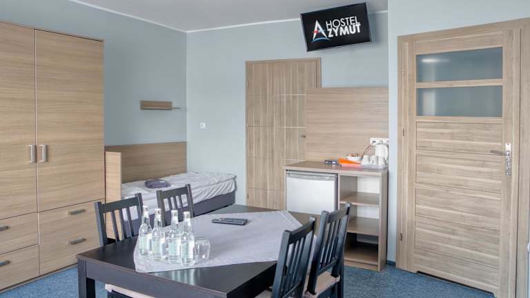 Das Hostel Azymut bietet gemütliche Zimmer mit allen Annehmlichkeiten, die Sie für einen angenehmen Aufenthalt benötigen. Jedes Zimmer verfügt über einen TV und einen DVD-Player, so dass Sie sich entspannen und Ihre Lieblingssendungen oder Filme genießen können. Ein Wasserkocher ist ebenfalls vorhanden, so dass Sie sich jederzeit eine Tasse Tee oder Kaffee zubereiten können. Die Zimmer verfügen auch über ein eigenes Badezimmer mit einer Dusche.