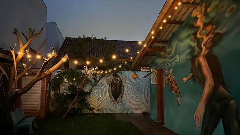 Das Floripa Surf Hostel ist die perfekte Unterkunft für Surfer und Strandliebhaber. Mit seiner idealen Lage nur 100 m vom Praia do Campeche entfernt bietet es eine entspannte Atmosphäre und eine Vielzahl von Annehmlichkeiten. Genießen Sie den TV-Raum mit Spielen, die voll ausgestattete Gemeinschaftsküche und die Hängematten mit Blick auf den Garten. Die Unterkünfte umfassen Schlafsäle und private Zimmer, die alle mit einer kleinen Küche ausgestattet sind. WLAN ist kostenlos verfügbar. Das Hostel liegt in der Nähe von verschiedenen Sehenswürdigkeiten, darunter die Campeche Insel und der Lagoa do Peri See. Das Zentrum von Florianópolis ist ebenfalls leicht zu erreichen.