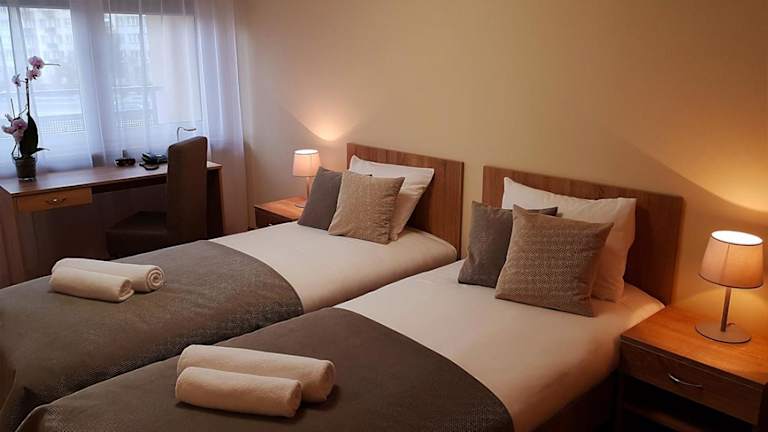 Die Zimmer im Hostel Fortis sind komfortabel und bieten alles, was Sie für einen angenehmen Aufenthalt benötigen. Jedes Zimmer verfügt über einen eigenen Balkon, auf dem Sie die frische Luft genießen können. Es gibt einen Schreibtisch, an dem Sie arbeiten oder Ihre Reisepläne ausarbeiten können, sowie einen Flachbild-TV für Ihre Unterhaltung. Jedes Zimmer verfügt über ein eigenes Badezimmer und Bettwäsche und Handtücher werden gestellt. Ein Kleiderschrank bietet ausreichend Platz für Ihre Kleidung und persönlichen Gegenstände.