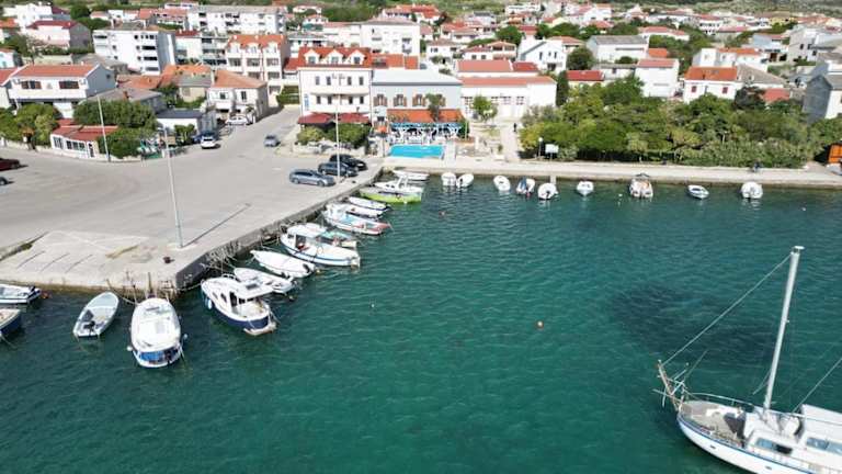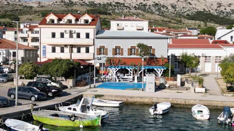 "Das Hotel Apartmani ""Jadran"" in Pag bietet eine komfortable Unterkunft direkt am Strand. Genießen Sie den Meerblick von einigen Zimmern und entspannen Sie in klimatisierten Räumen mit moderner Ausstattung. Die Nähe zu verschiedenen Stränden und die Möglichkeit, die Stadt Pag zu erkunden, machen dieses Hotel zu einer idealen Wahl für Ihren Urlaub."