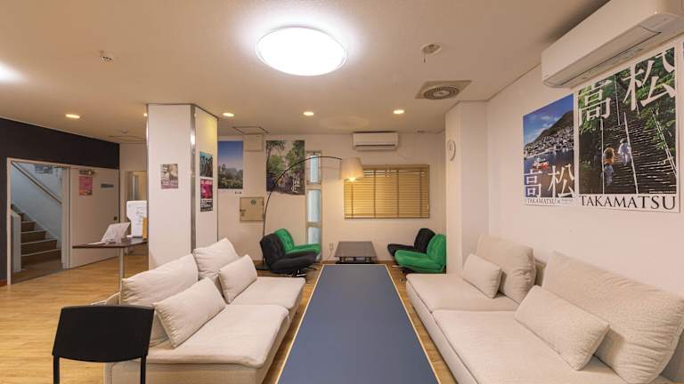 Das Hostel JAQ takamatsu bietet eine Reihe von Annehmlichkeiten, darunter ein Conciergeservice, Nichtraucherzimmer sowie eine Gemeinschaftslounge. Kostenloses WLAN ist in der gesamten Unterkunft verfügbar. Die Gäste können außerdem die Terrasse des Hostels nutzen. Ein Privatparkplatz steht vor Ort zur Verfügung.